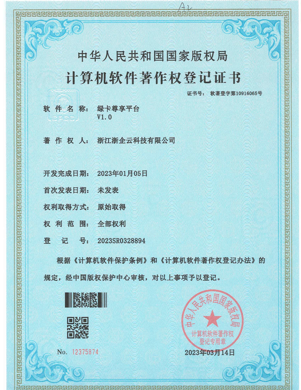 軟件著作權(quán)證書